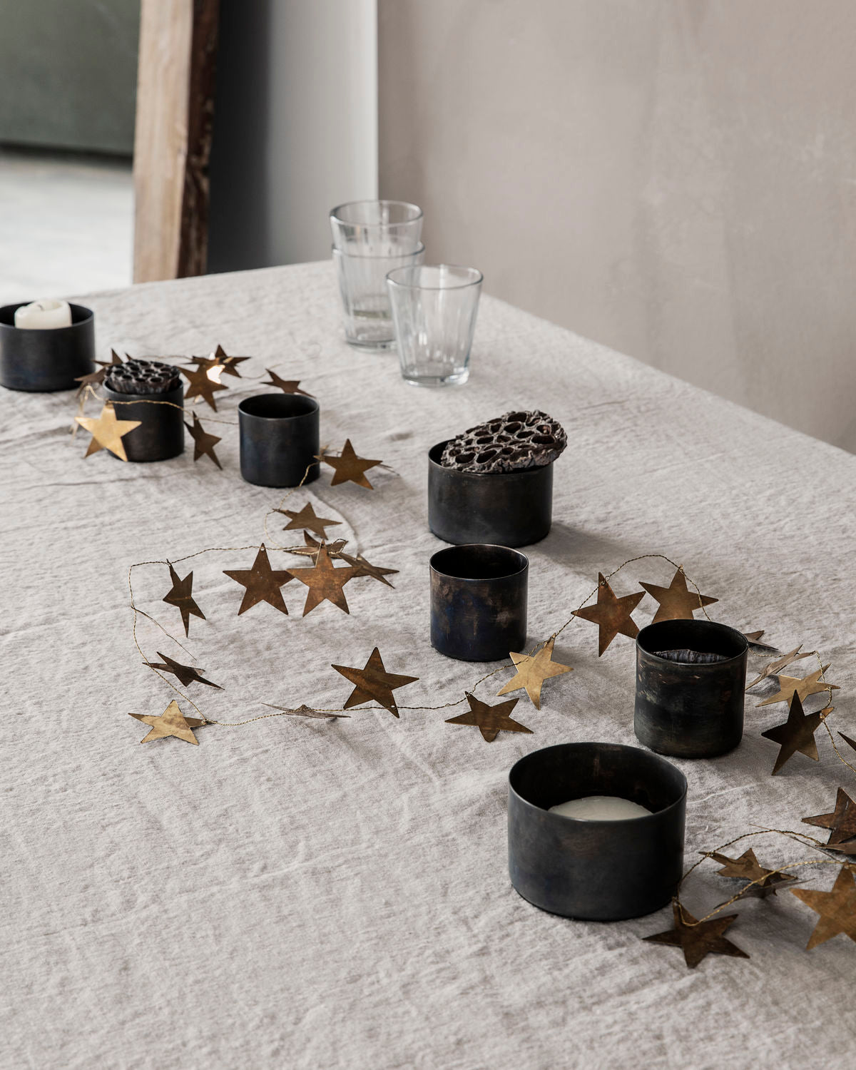 We've stocked this garland and its little sister version for several years now and it remains a favourite. Enjoy this string of simple brass stars with it's antiqued finish, perfect for adding a subtle, timeless touch to seasonal decorating. Drape across a mantelpiece, weave through a wreath, or style along a festive table setting — its lightweight, flexible design makes it beautifully versatile.