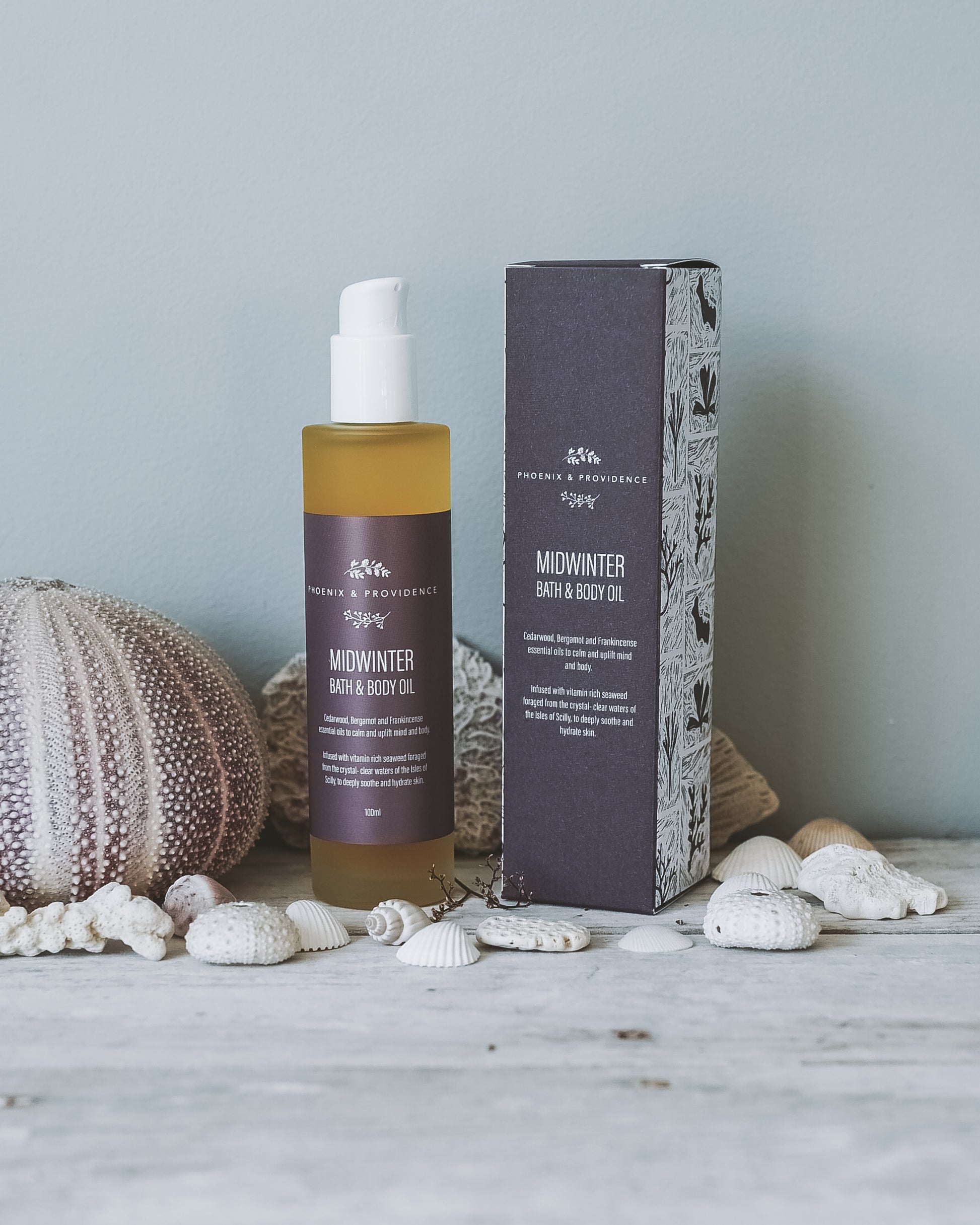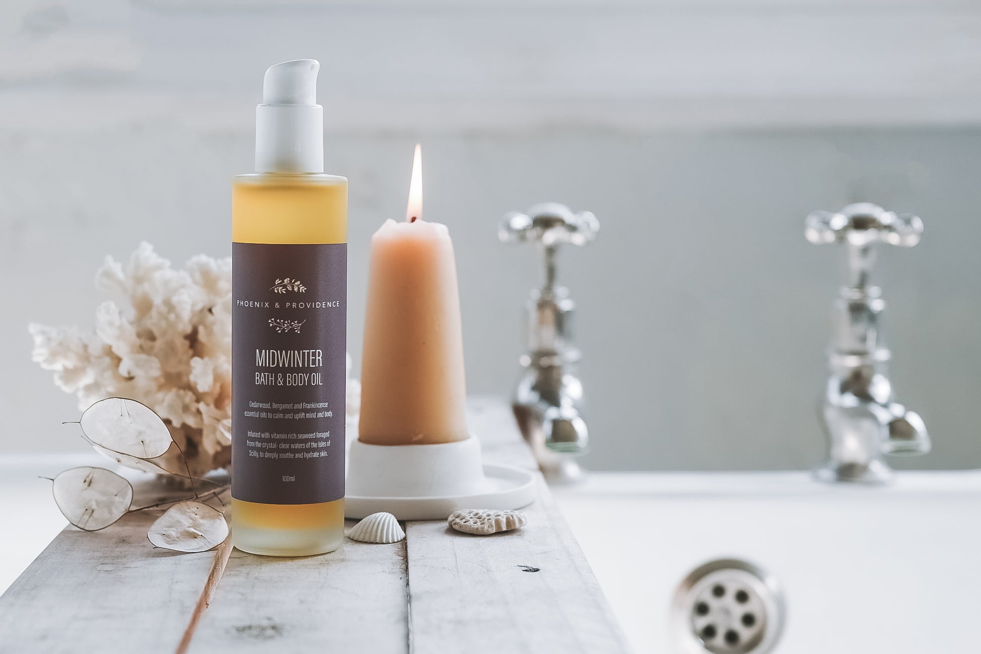 Our seasonal bath and body oil is inspired by the changing energies of island life. Formulated to replenish and rejuvenate skin, Midwinter is scented to brighten mood and dispel feelings of lethargy.