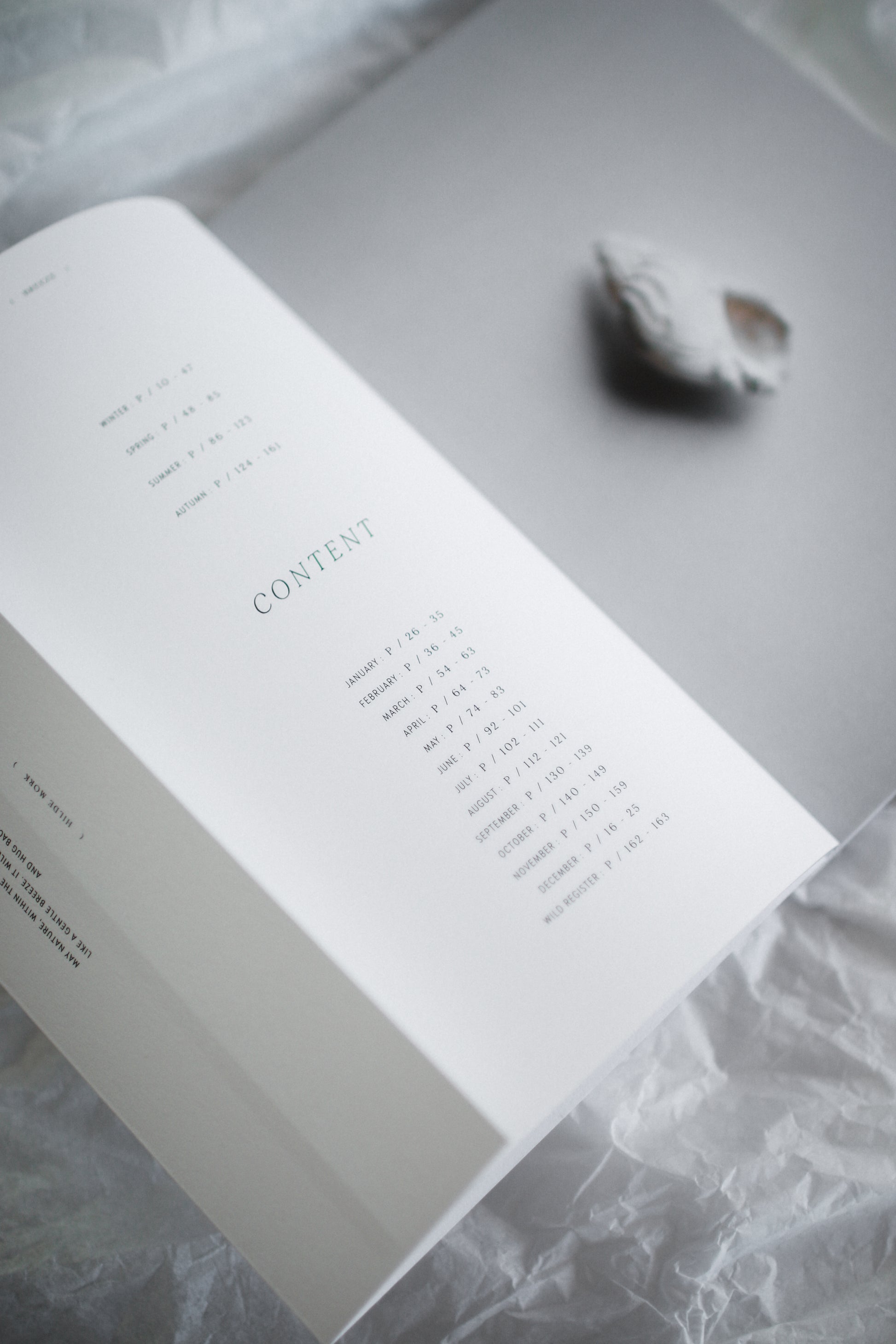 164 pages (17 x 24 cm) wrapped in a soft matte, paper cover with flaps, glued spine, mostly colour photos printed on matte paper in my seasonal palette with a hint of the most loved, vibrant spring greens, endless sunny summer tones, frosty, winter blues, autumnal warmth, sprinkled with grainy black and white photos.