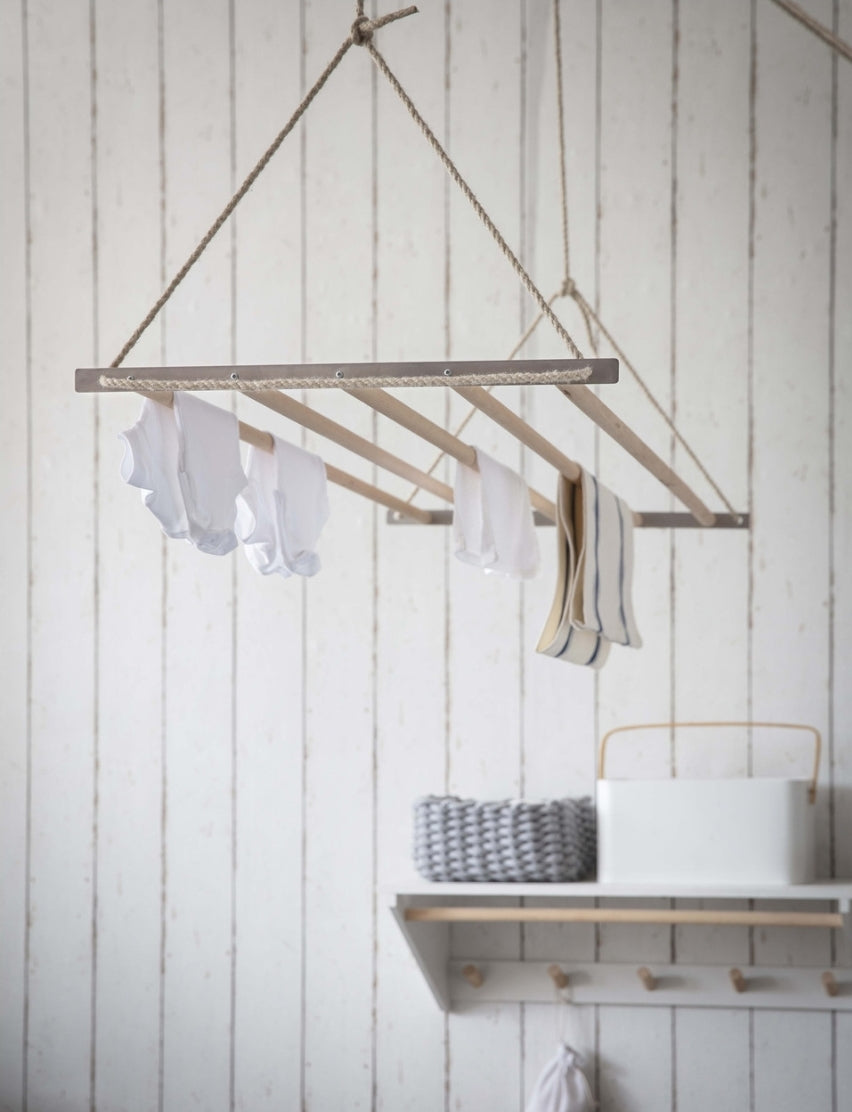 Save on floor space and go vertical. Above the aga, in the utility room or in that warm spot that catches the afternoon sun. Use the pulley system to move the dryer up and down with every load.