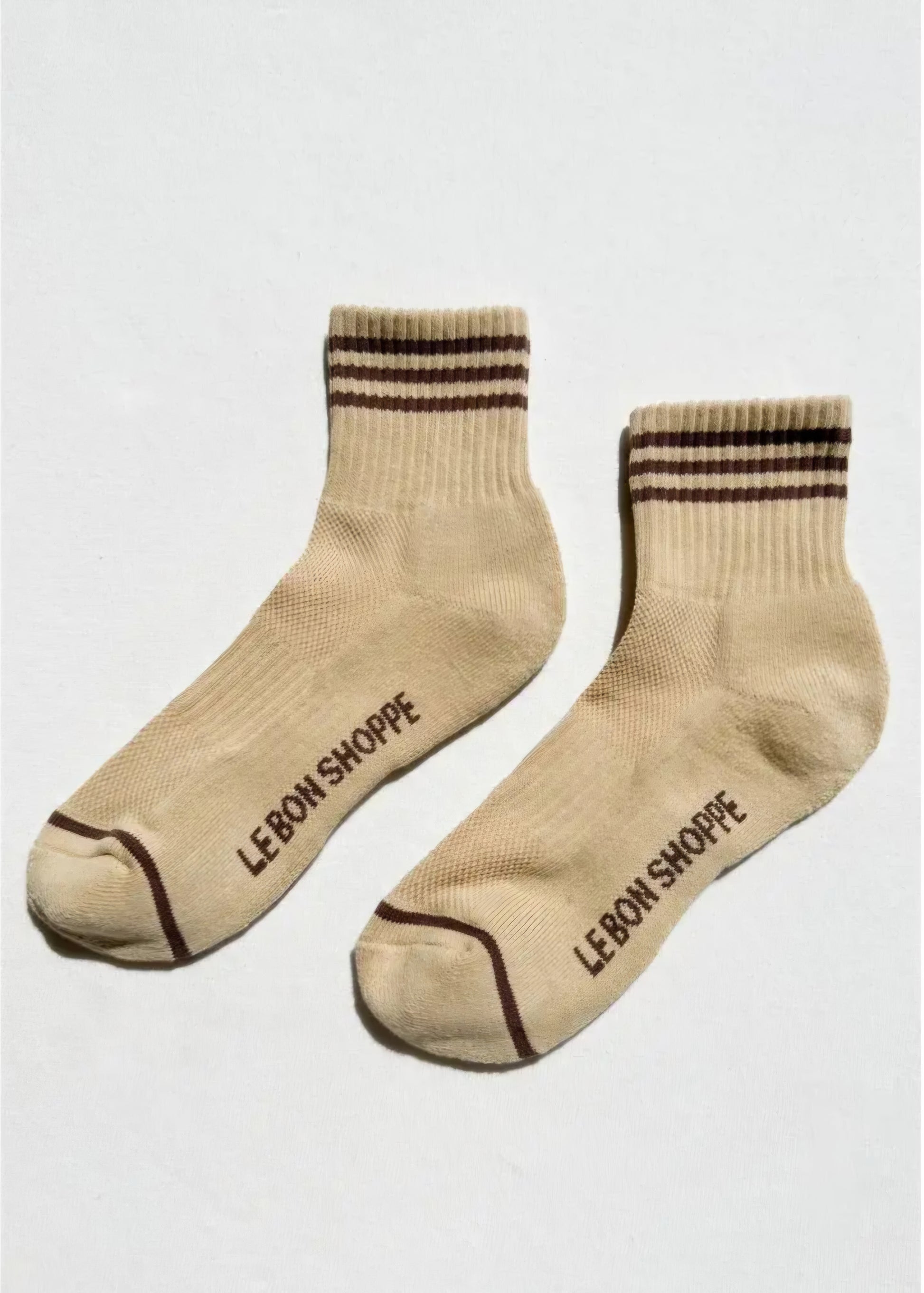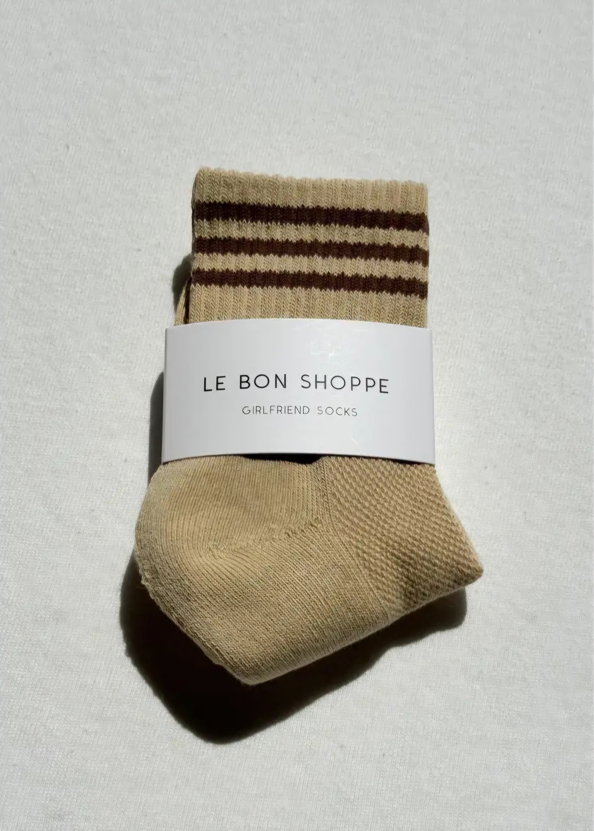 A sister to the much-loved Boyfriend Socks, the Girlfriend Socks from Le Bon Shoppe bring the same effortless comfort in a slightly shorter crew length. Knitted from a soft, breathable cotton blend, they feature a triple contrast stripe and a gently cushioned foot for everyday wear.