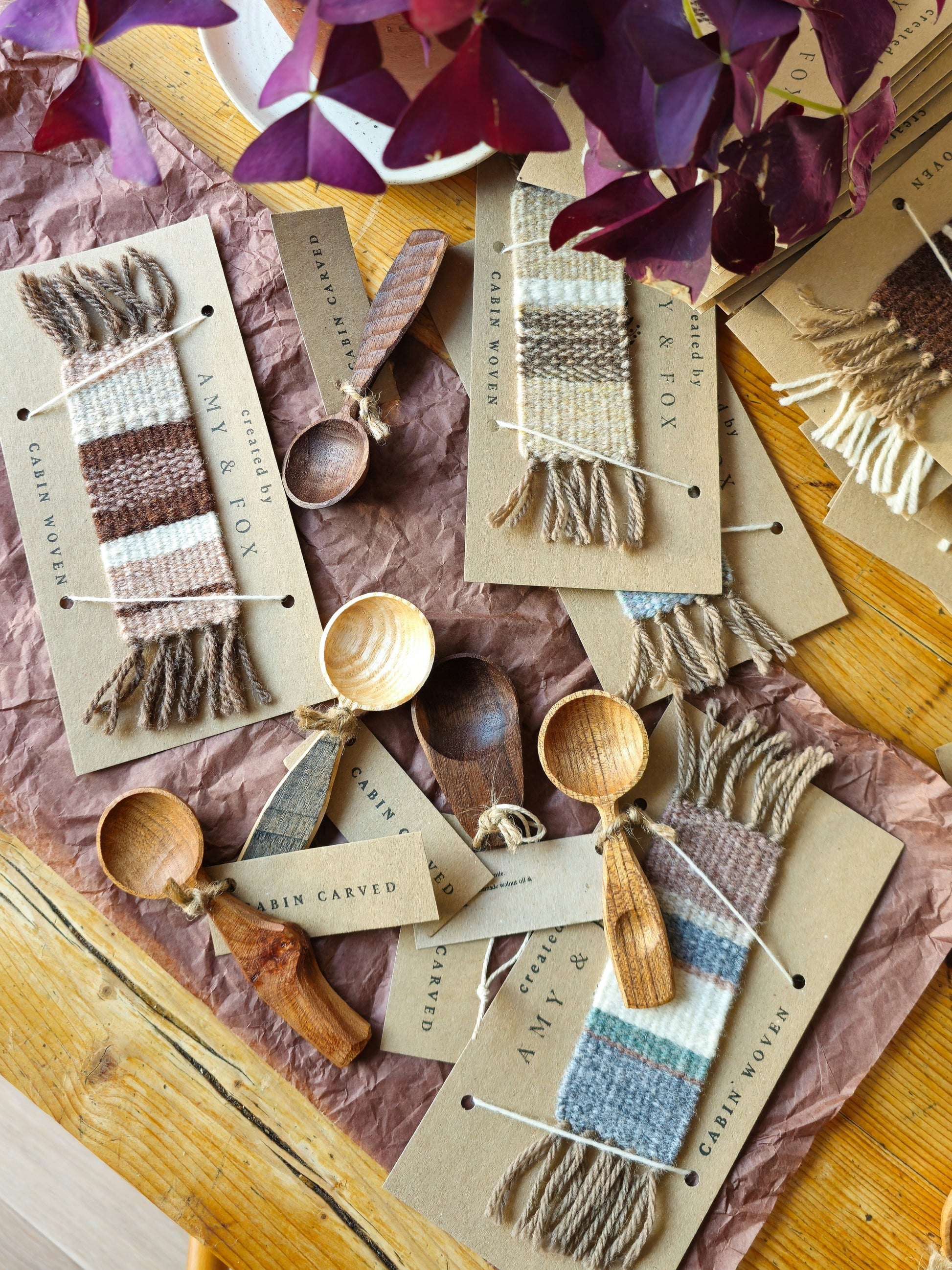 Hand woven bookmarks, made in the Highlands of Scotland by Amy, one half of This Cabin Van.