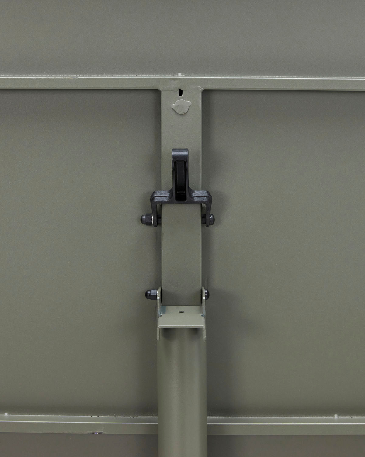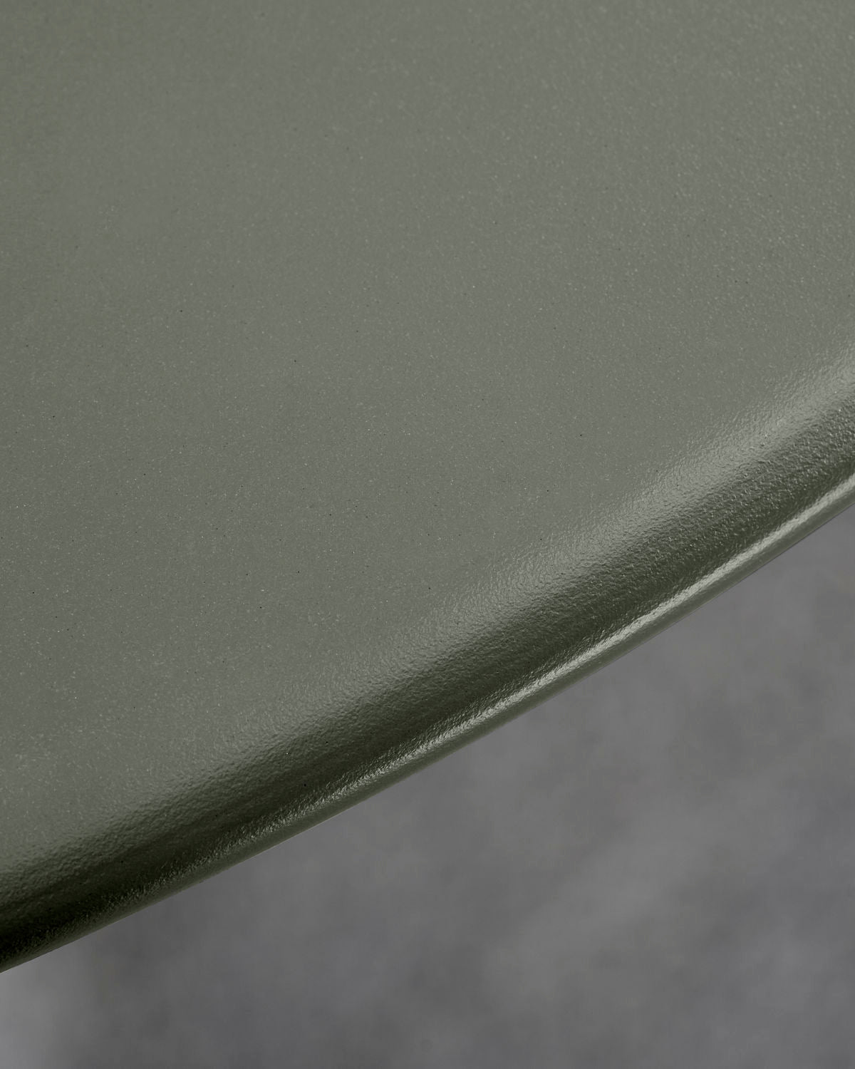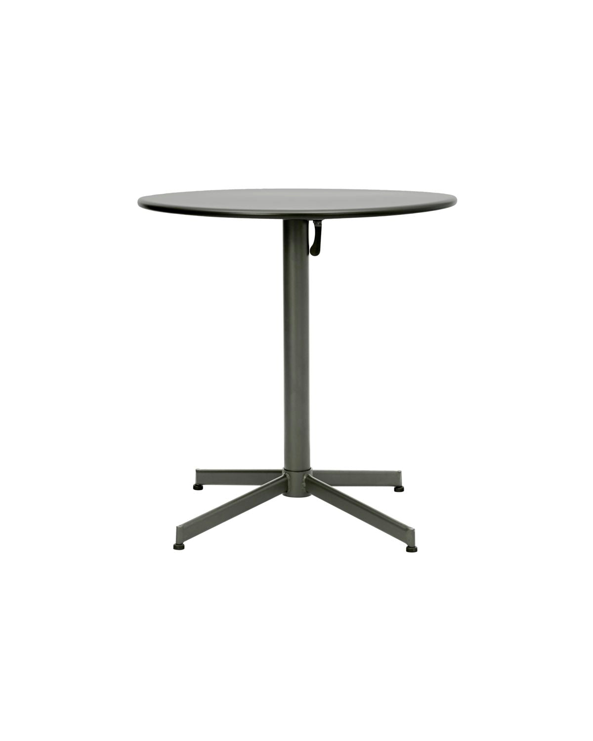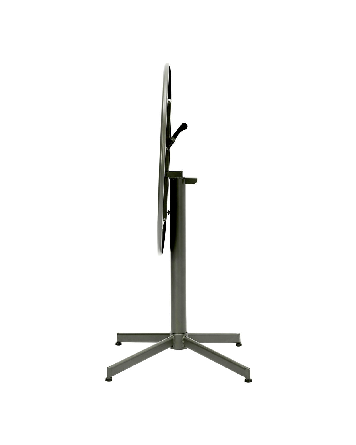Finished with a matt, green powder coating. The tabletop can fold into an upright position when not in use.