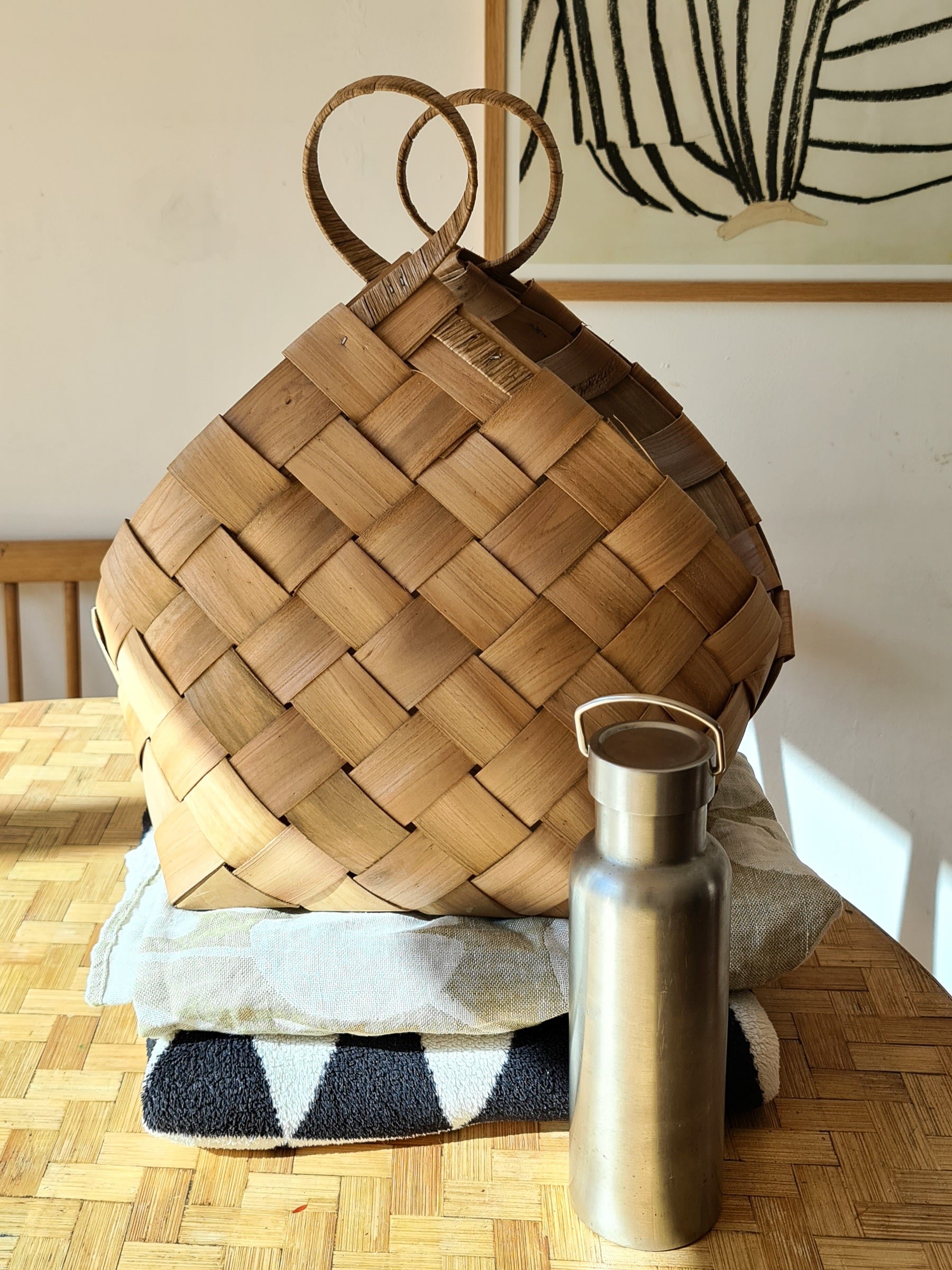 The ideal beach basket, the sand easily shakes out of the bottom, or take to the market or on a picnic.