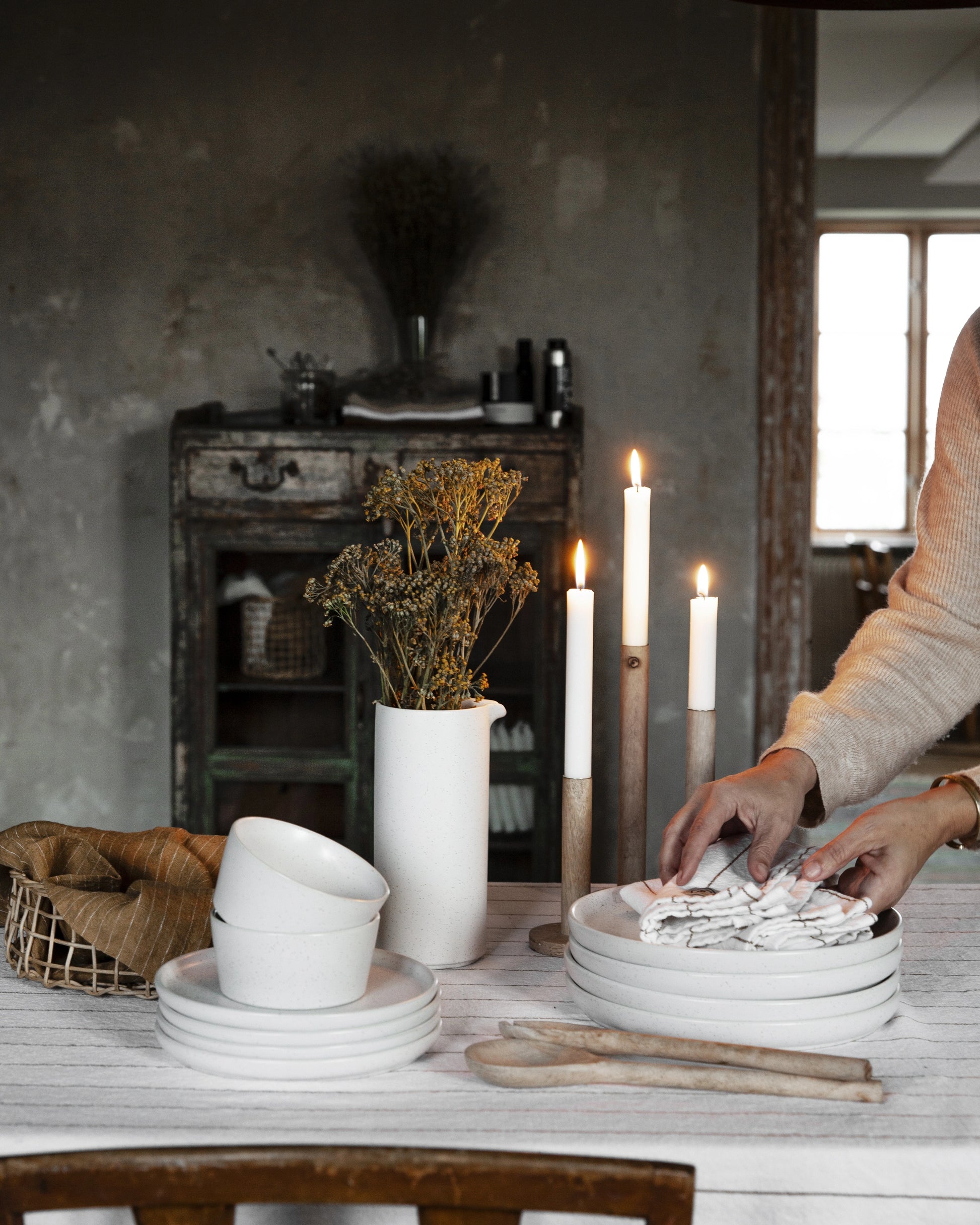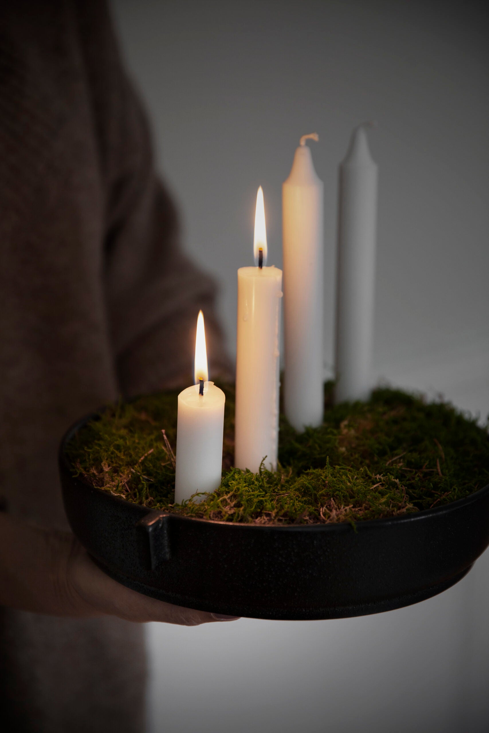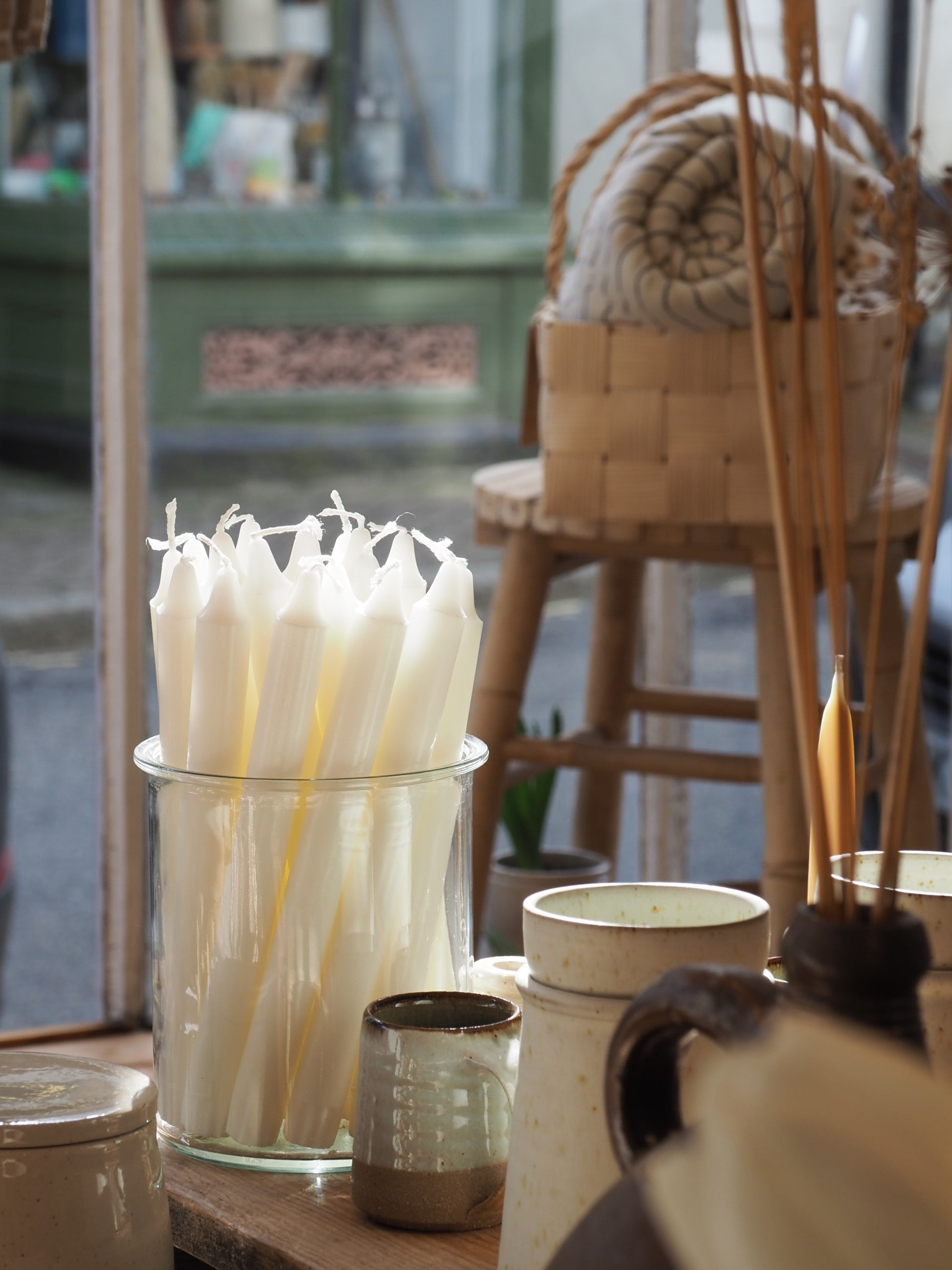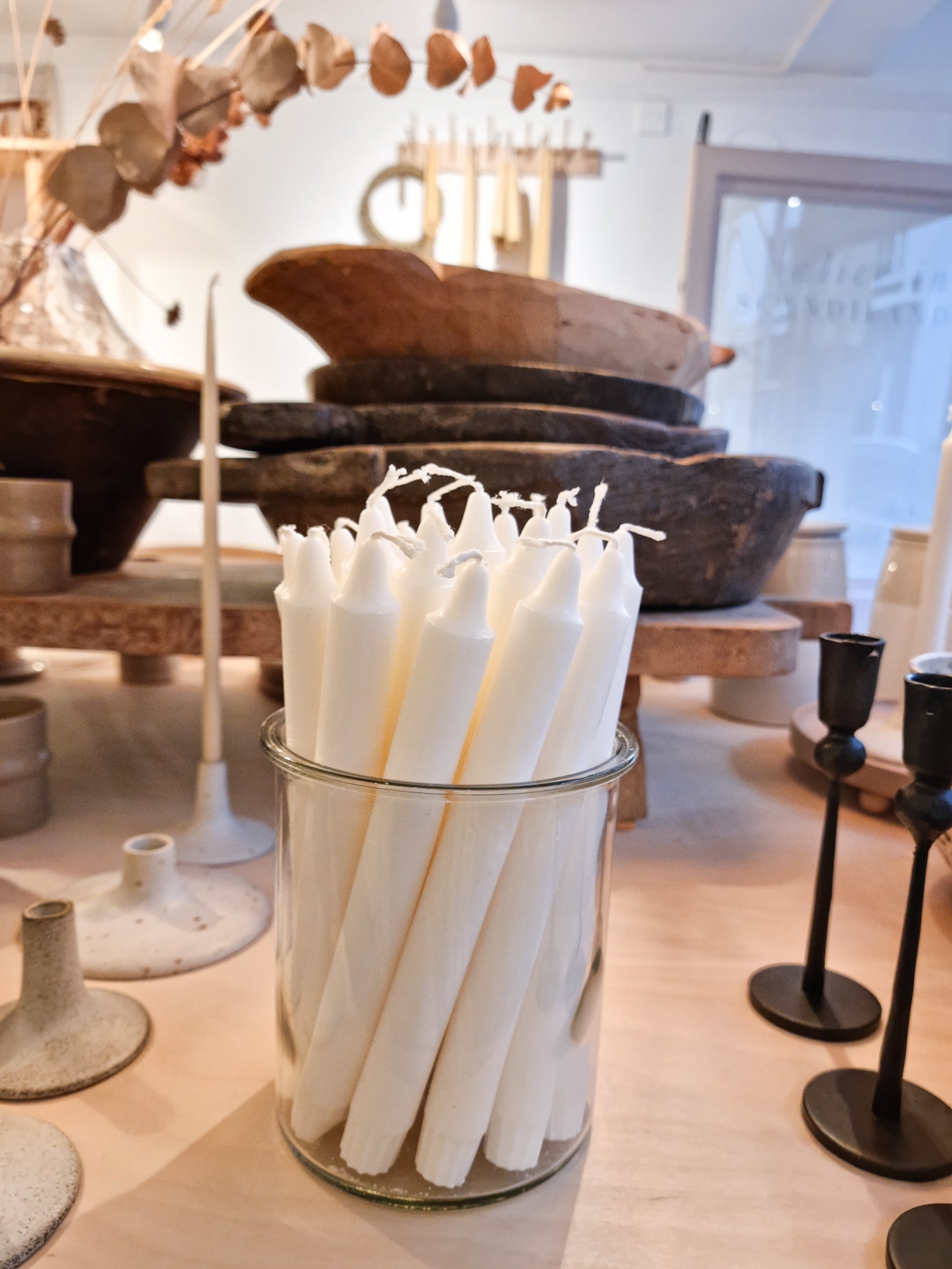 A standard size which fits most candle holders. Made from Stearin (vegetable based wax).