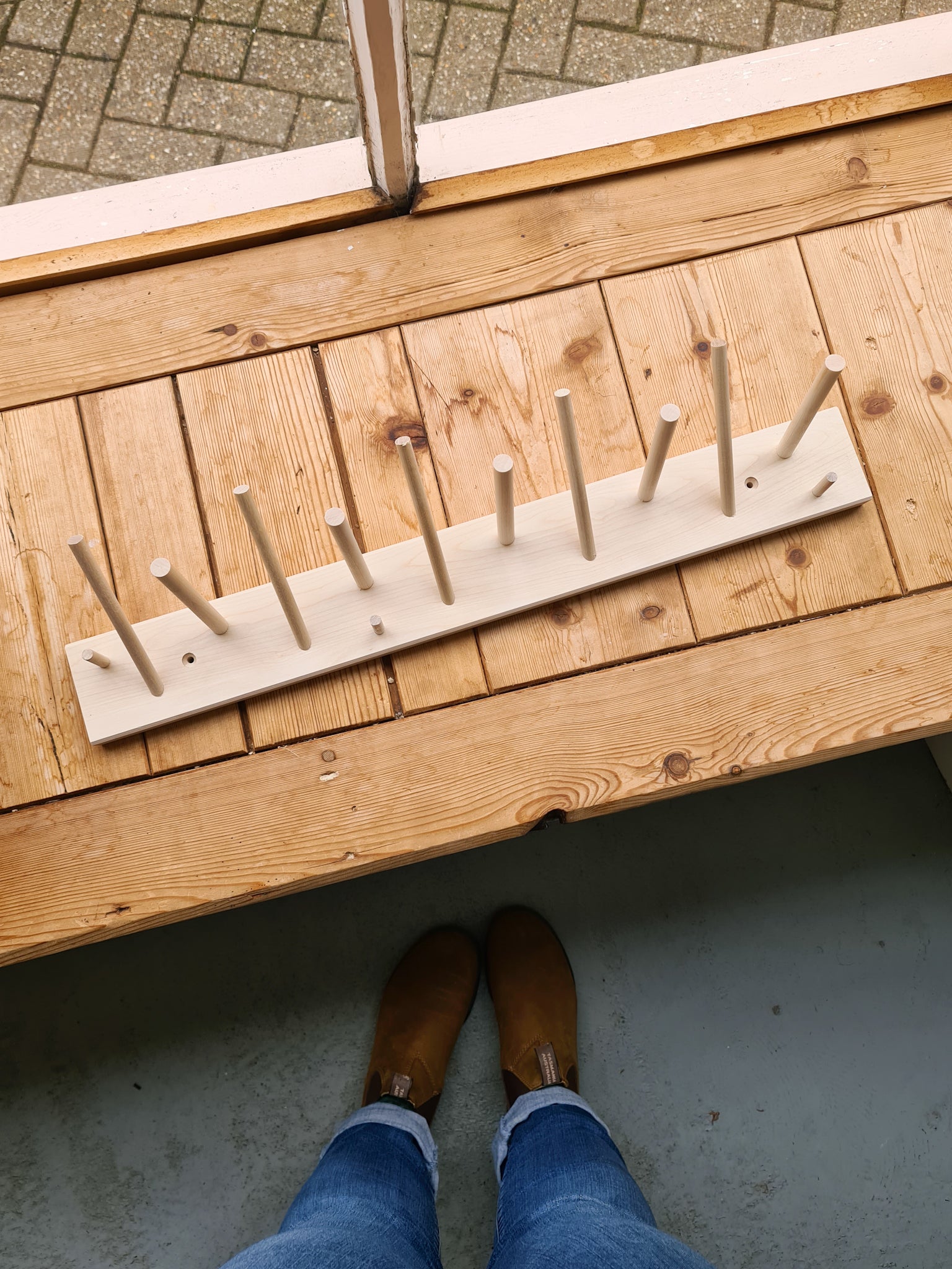 The hanger is designed to store all rinsed disposable packaging while drying before recycling. But it also works very well as a hanger in the bedroom, hall and bathroom or why not in the greenhouse for garden tools. Because it is untreated, you can oil, paint, wax or leave it raw.