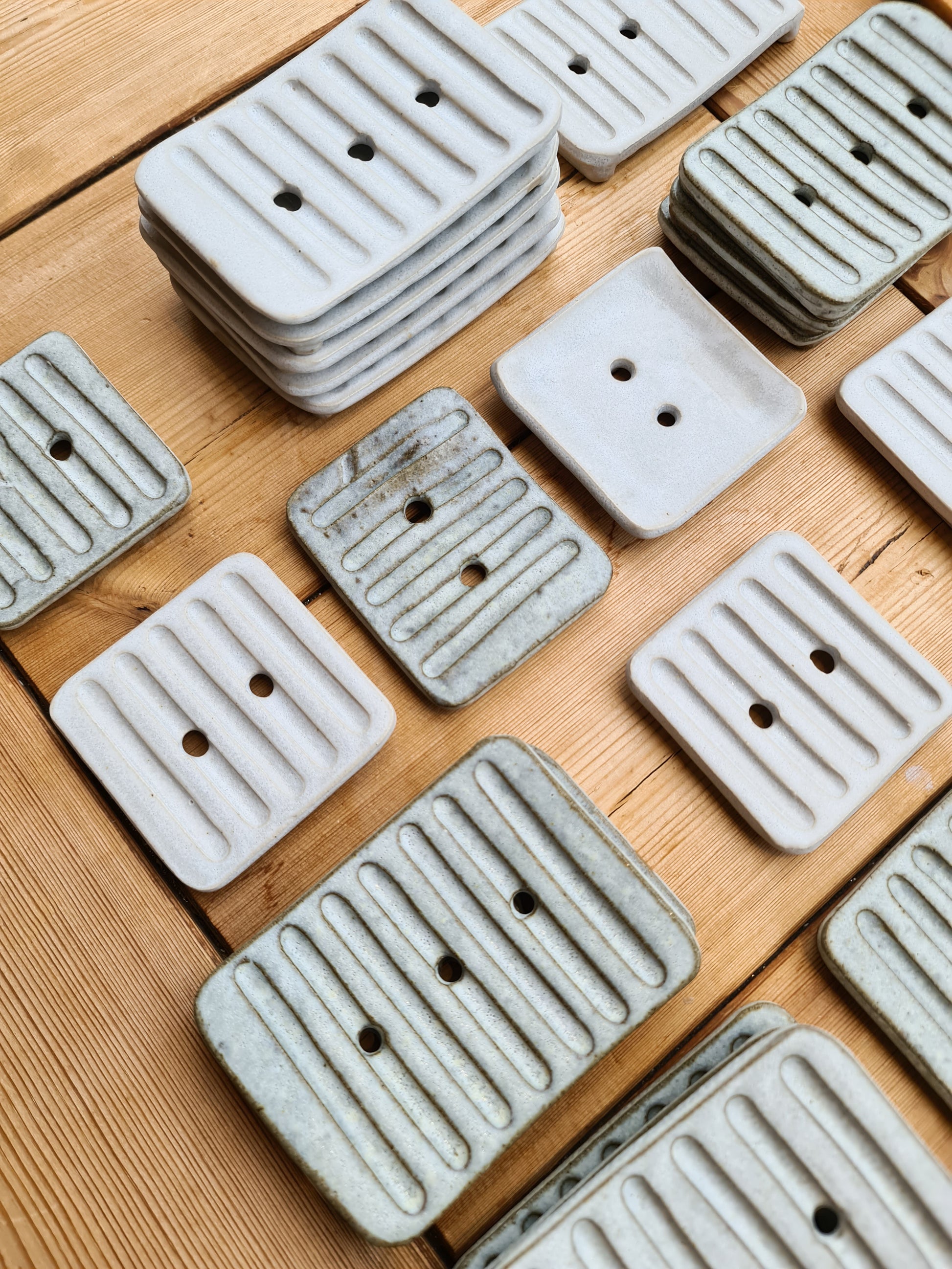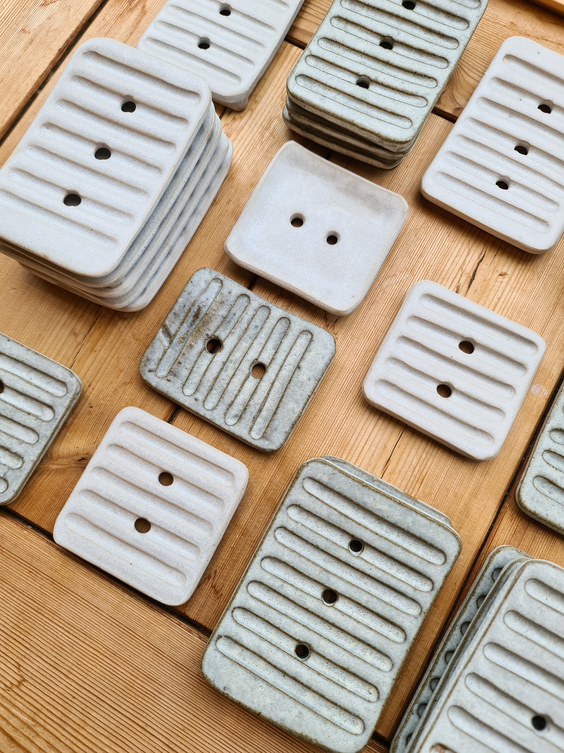 Beautiful handmade ceramic soap dishes, made by Jane Lake in Plymouth, Devon.