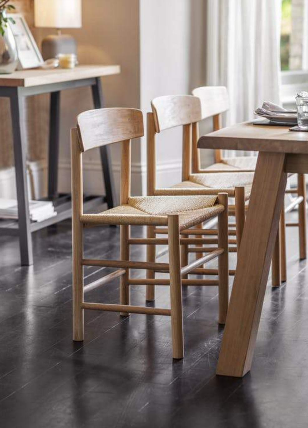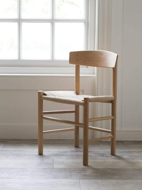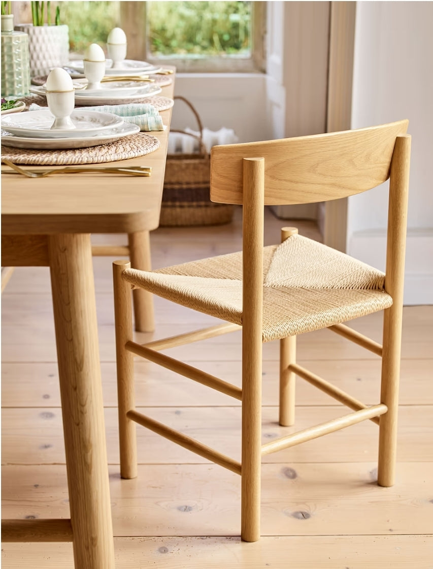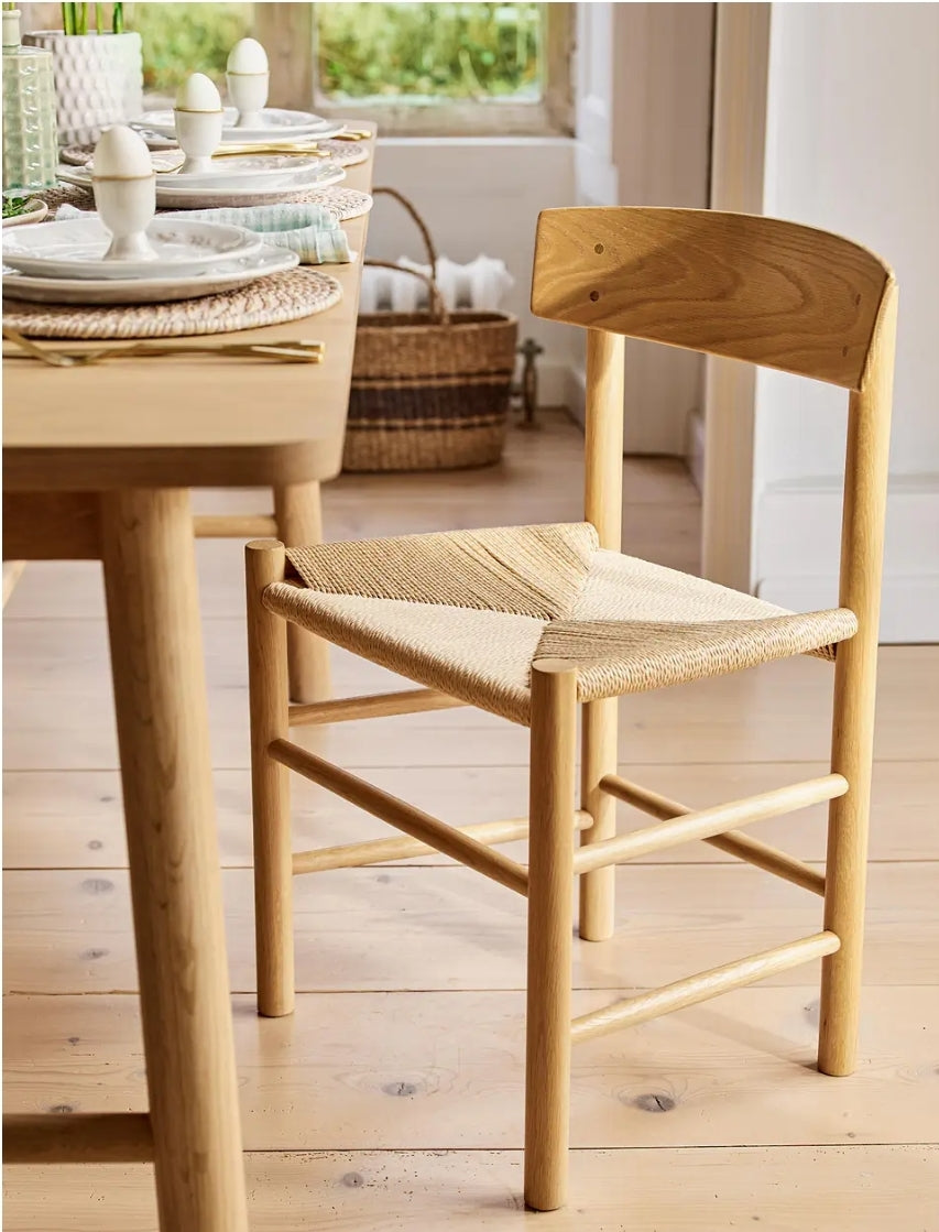 This beautifully understated dining chair is made from raw, sustainably sourced oak, with a handwoven paper cord seat that adds warmth and subtle texture. Inspired by classic Shaker silhouettes, it balances function and form — equally suited to everyday family meals, a quiet reading corner, or a calm studio space.