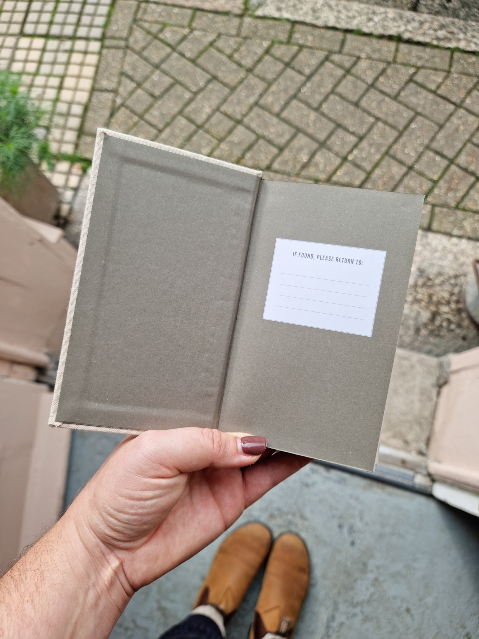 A rich oatmeal-coloured, canvas cloth case, striking metallic page edges, and a ribbon page marker and one line for every day.