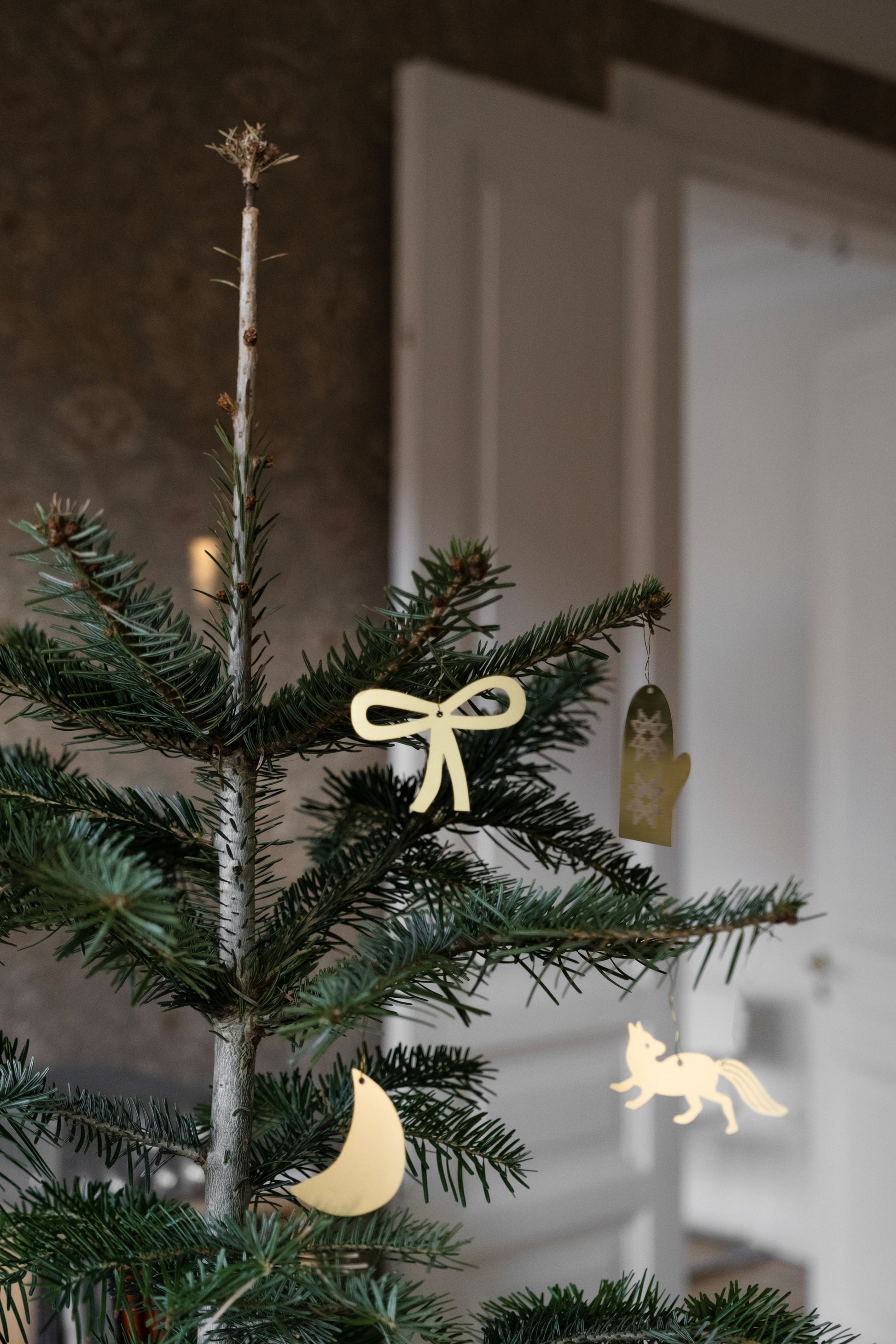Decorative ornaments in gold plated stainless steel. Hang them in a branch of the Christmas tree, a garland, or decorate the table ware.