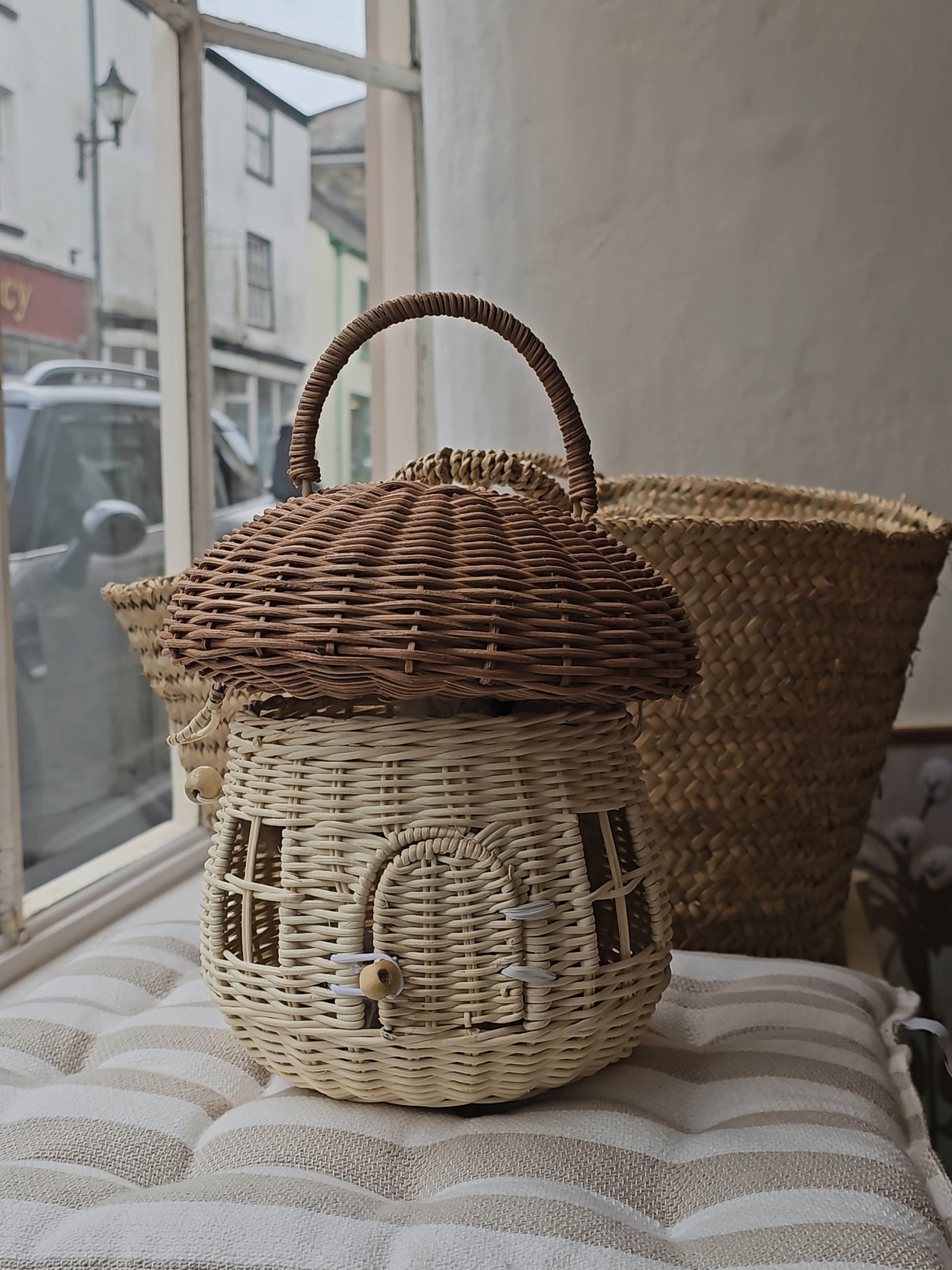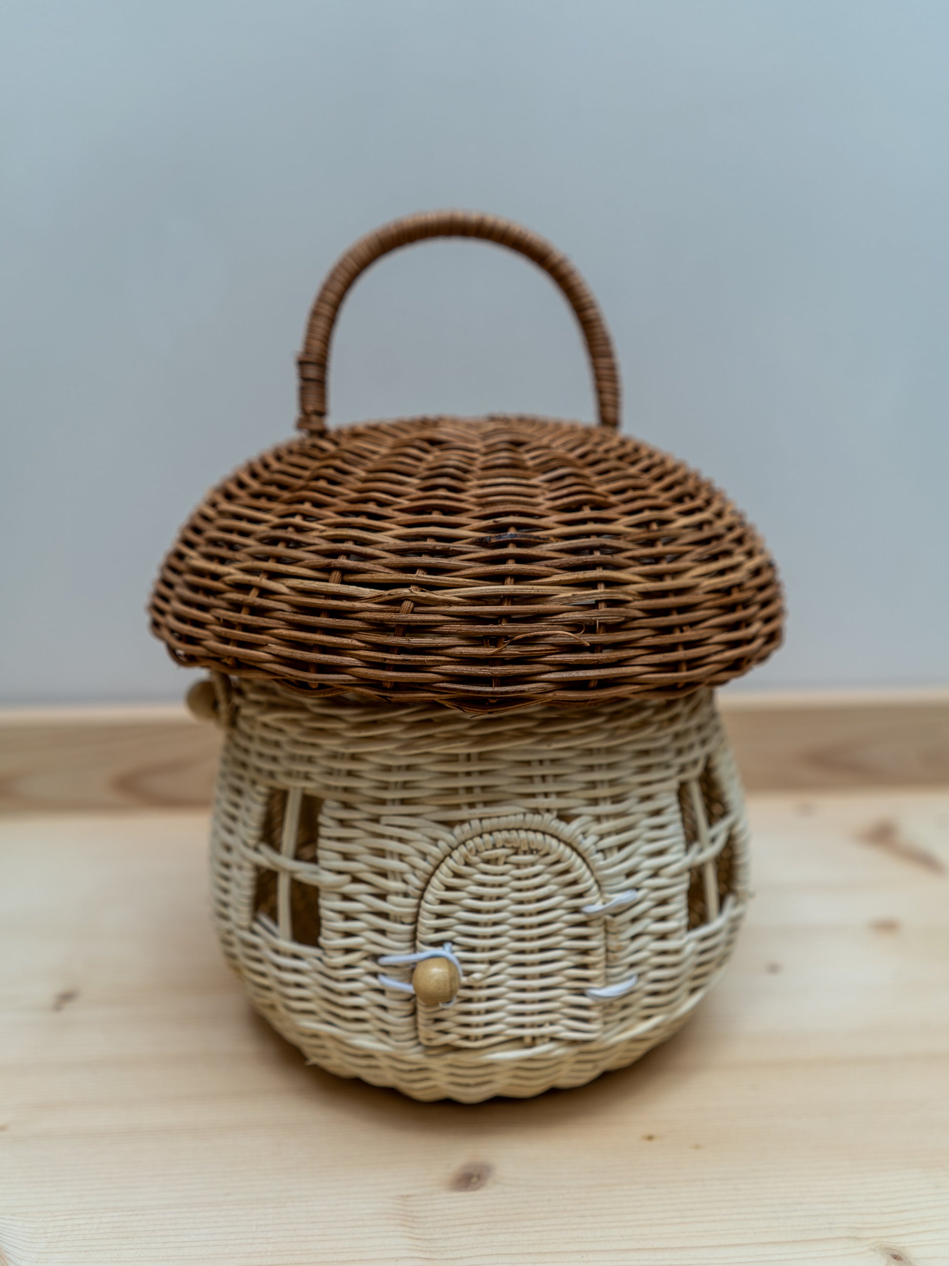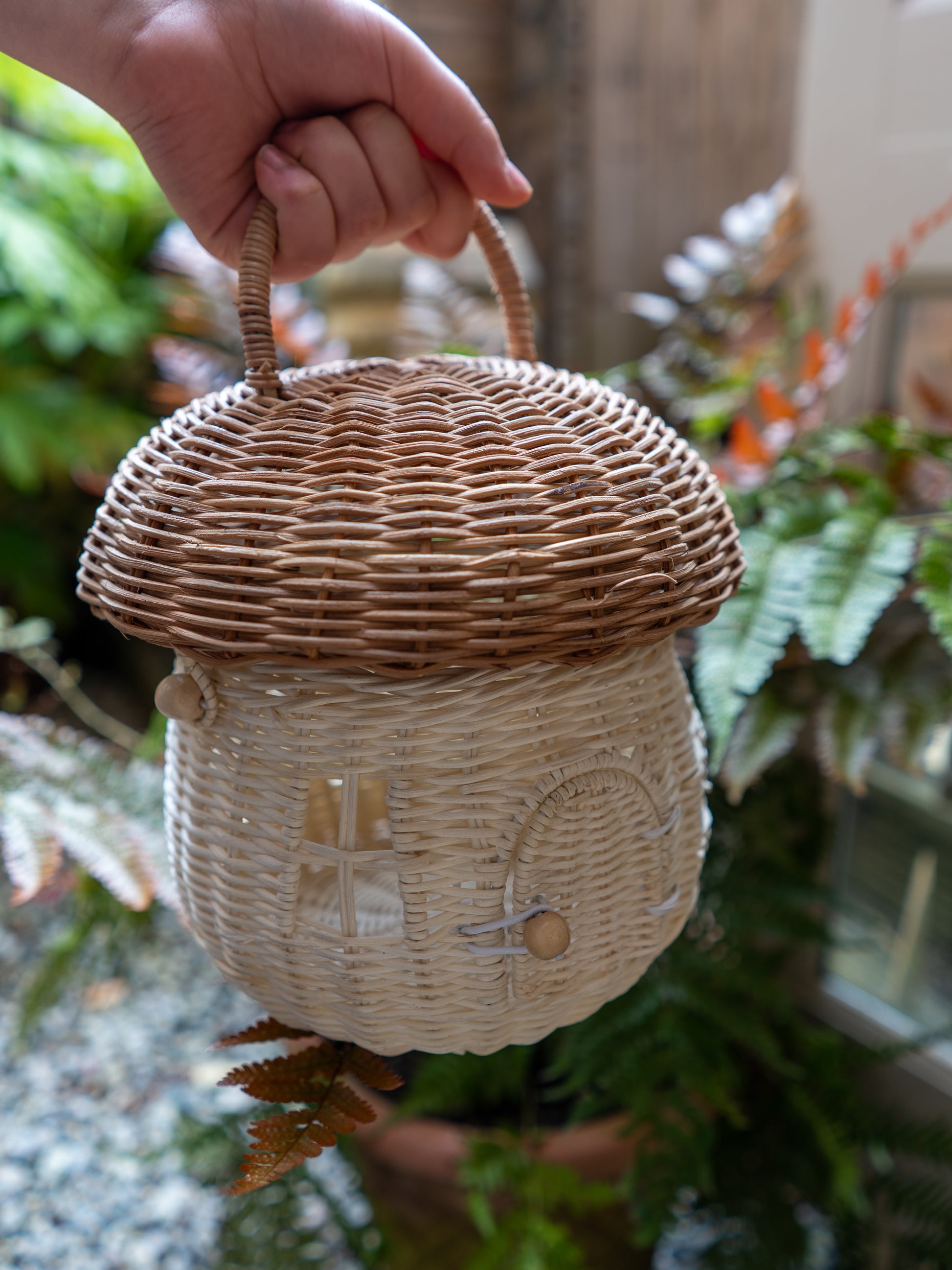 The sweetest little mushroom-shaped basket, made from natural rattan.