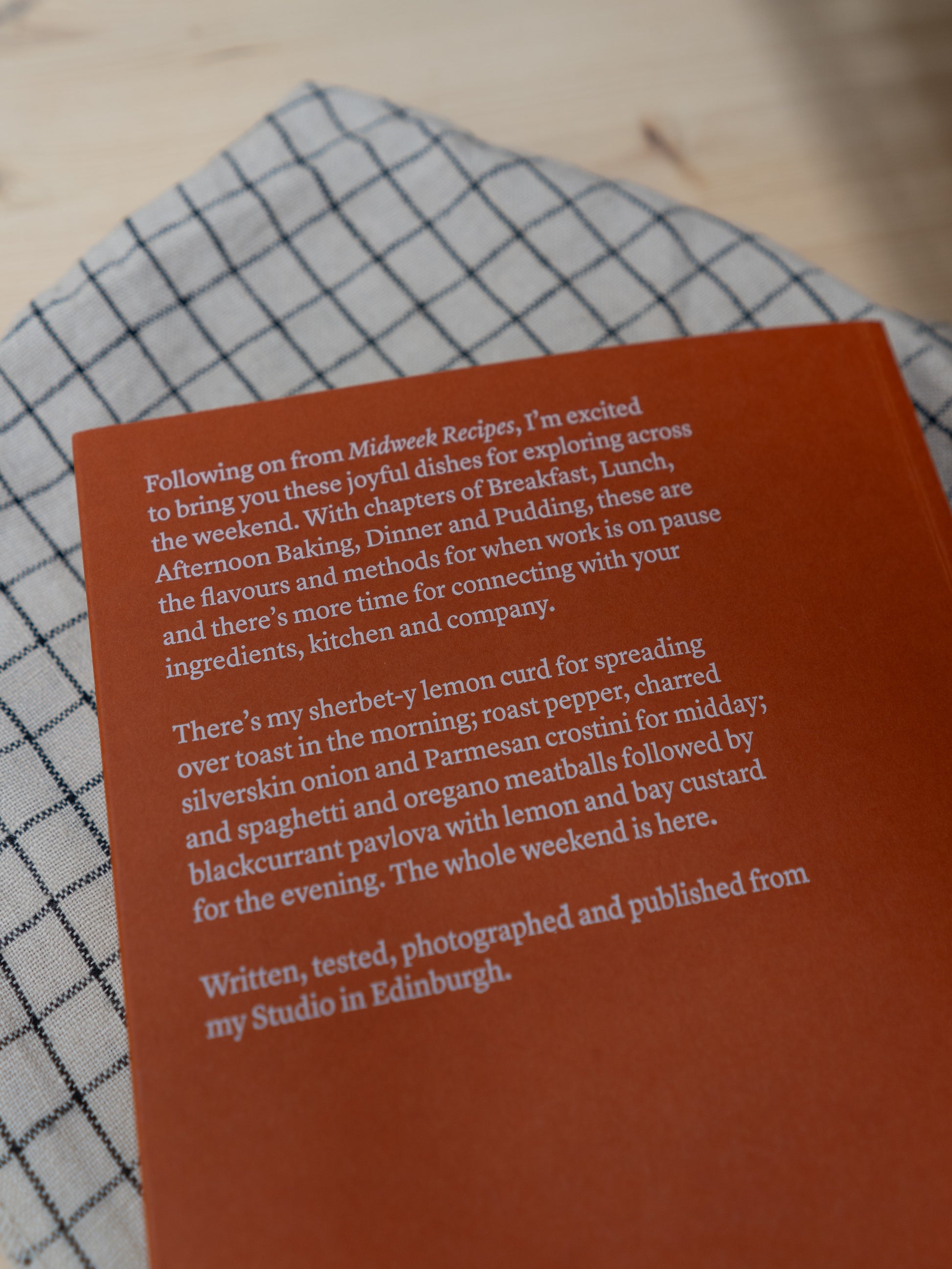 "Following on from Midweek Recipes, I’m excited to bring you these joyful dishes for exploring across the weekend. With chapters of Breakfast, Lunch, Afternoon Baking, Dinner and Pudding, these are the flavours and methods for when work is on pause and there’s slightly more time for connecting with your ingredients, kitchen and company.
